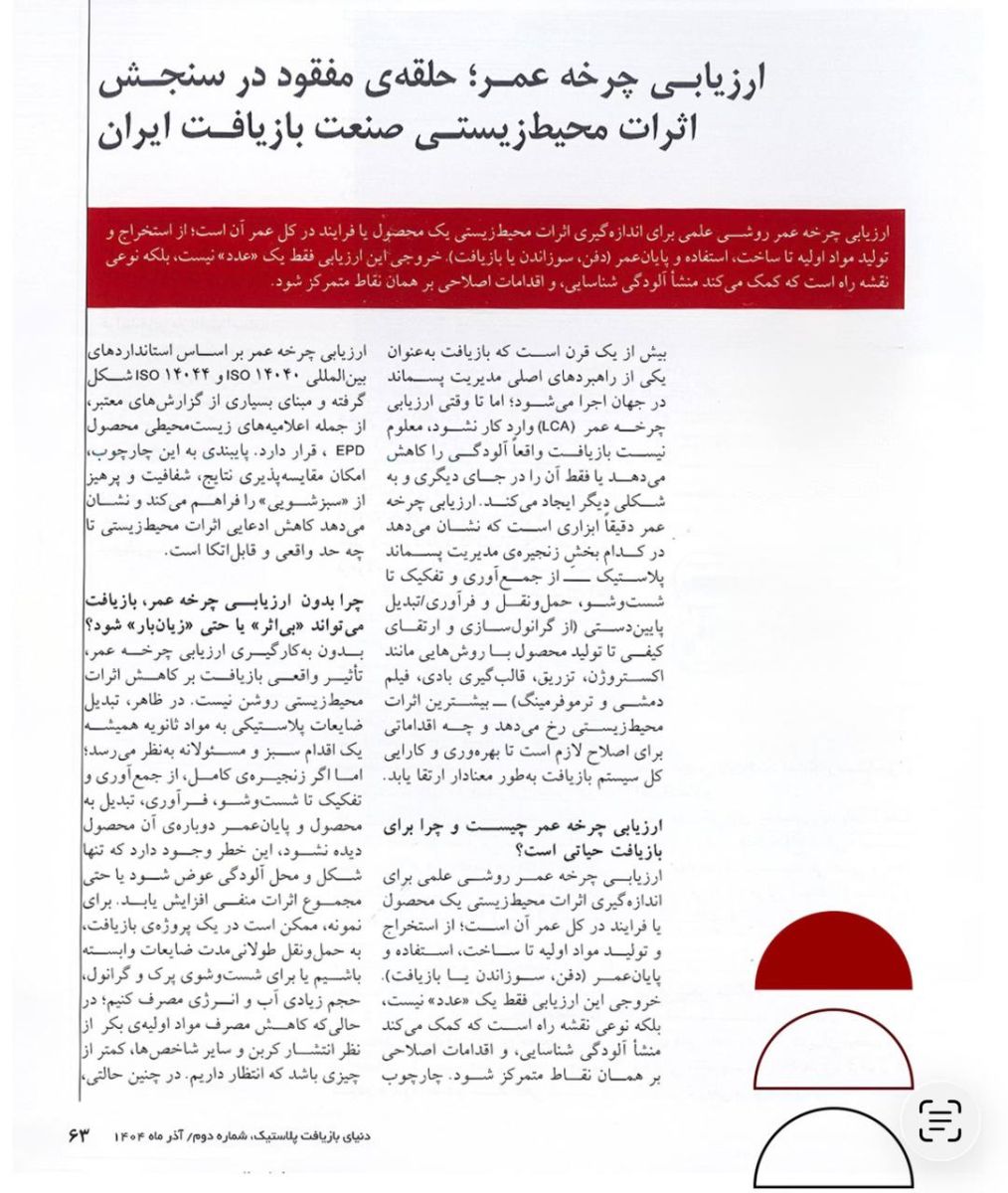 مقاله ارزیابی چرخه عمر؛ حلقه مفقود در سنجش اثرات محیط زیستی صنعت بازیافت ایران